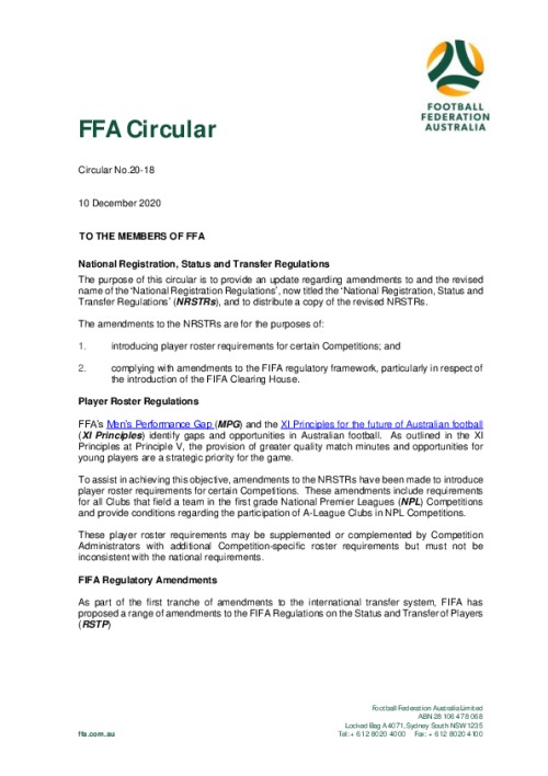 Name 20-18 FFA Circular - National Registration Status and Transfer Regulations Document File Document 20-18 FFA Circular - National Registration Status and Transfer Regulations.pdf