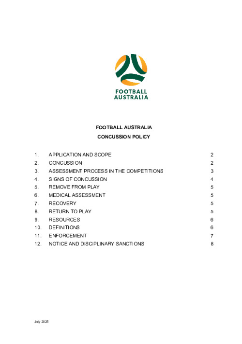 Name 25-0722 - FA Concussion Policy Official Date Thursday, July 24, 2025 - 12:15 Document File Document 25-0722 - FA Concussion Policy.pdf