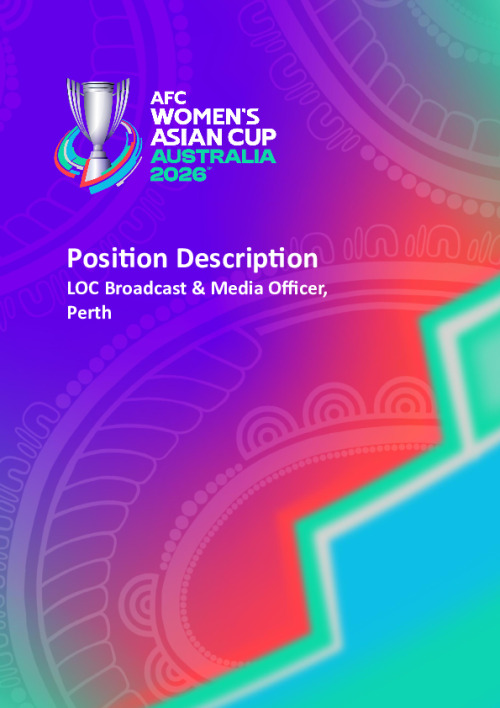 Name Position Description - Broadcast & Media Operations Officer (Perth) - AFC Women's Asian Cup 26 LOC Office Official Date Thursday, August 21, 2025 - 13:45 Document File Document Position Description - Broadcast & Media Operations Offer (Perth) - AFC Women's Asian Cup 2026 LOC Office.pdf