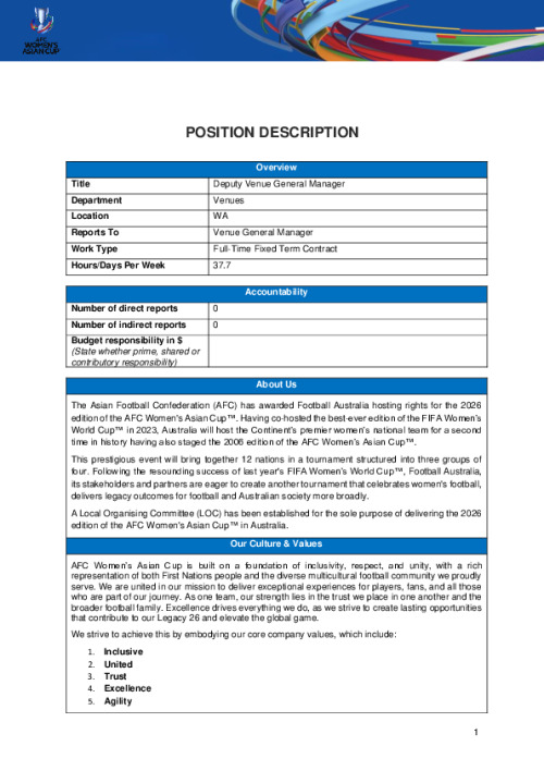 Name Position Description Deputy VGM Perth 3/07/2025 Official Date Friday, July 4, 2025 - 10:21 Document File Document Position description -Deputy VGM WA.pdf