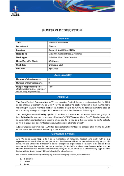 Name Position Description - Financial Accountant - AFC Women's Asian Cup 26 LOC Office Official Date Saturday, July 19, 2025 - 11:30 Document File Document Position description - Financial Accountant - AFC Women's Asian Cup 2026 LOC Office.pdf