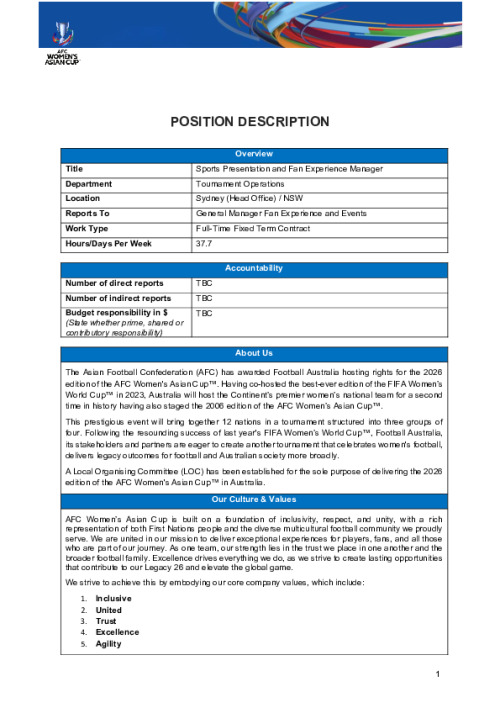 Name Position Description Sports Presentation and Fan Experience Manager 4/07/25 Official Date Saturday, July 5, 2025 - 14:57 Document File Document Position description_Sports Presentation and Fan Experience Manager_0.pdf