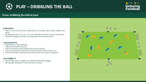 Name Session 17: Dribbling the ball Instructions for a training session on dribbling the ball. Official Date Thursday, August 7, 2025 - 15:15 Document File Document Session 17 Dribbling the ball.pdf