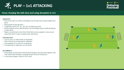 Name Session 19: 1v1 attacking Instructions for a training session on 1v1 attacking. Official Date Thursday, August 7, 2025 - 15:15 Document File Document Session 19 1v1 attacking.pdf