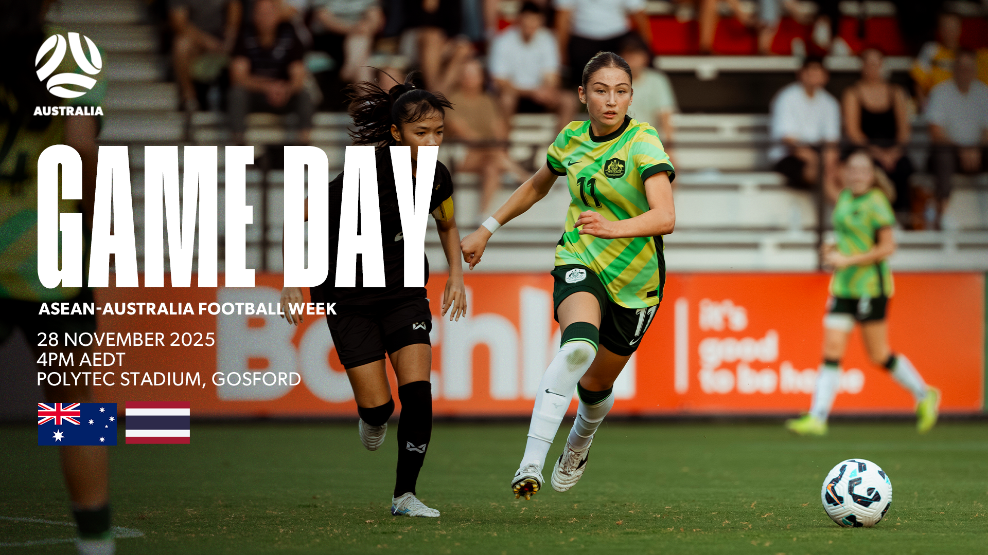 As part of ASEAN-Australia Football Week, the teams will meet in Gosford tonight for a curtain raiser to the CommBank Matildas’ clash with New Zealand at polytec Stadium, kicking off at 4pm AEDT.